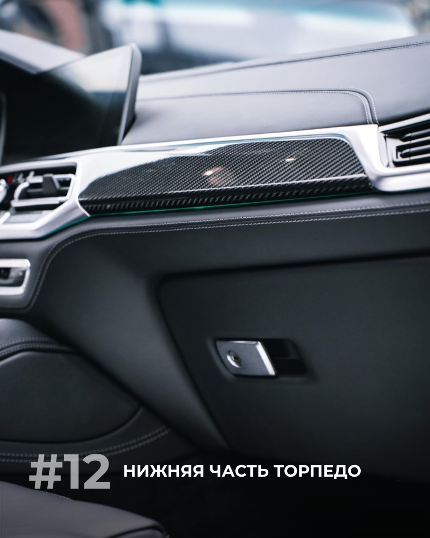 Комплекс услуг по антипластику BMW может включать в себя перетяжку следующих элементов салона: