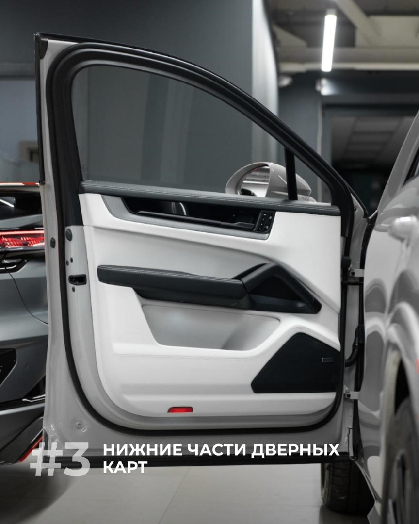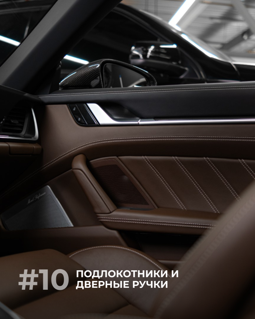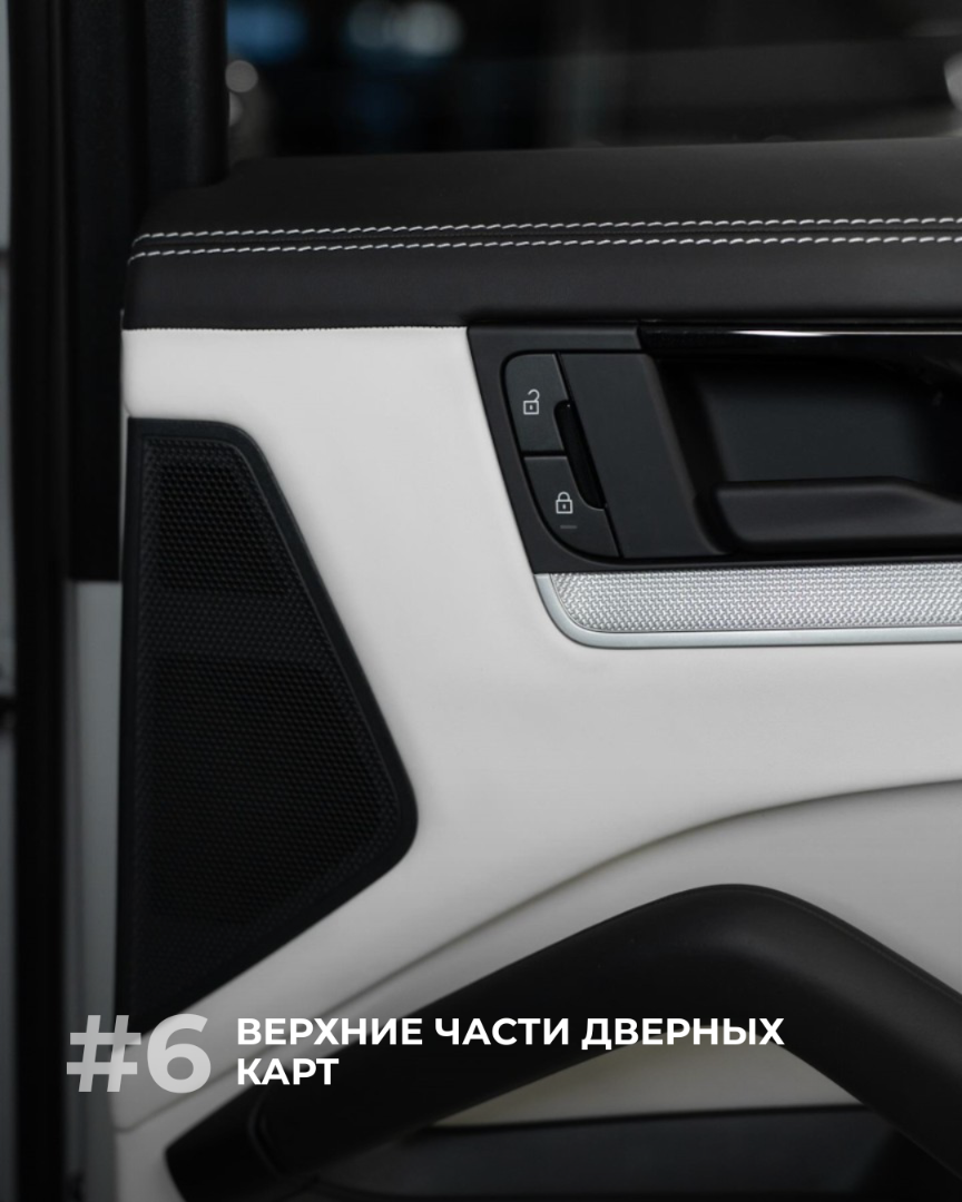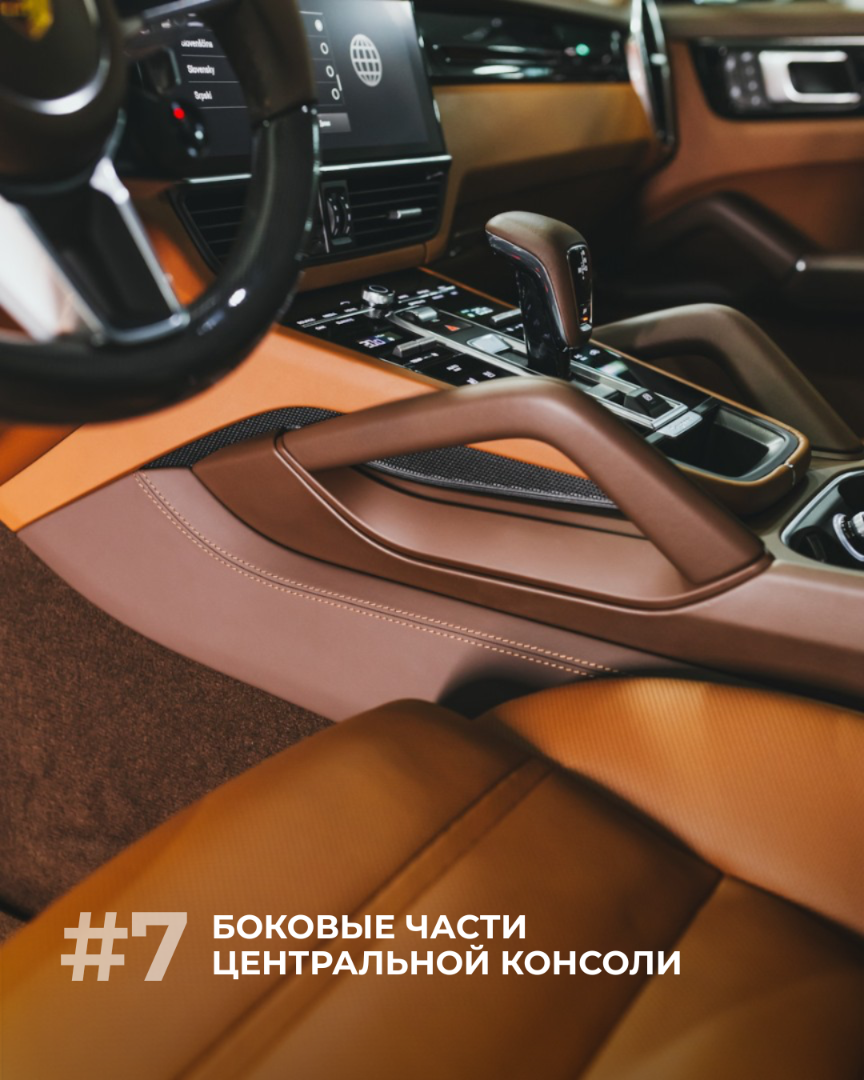 Комплекс услуг по антипластику Porsche может включать в себя перетяжку следующих элементов салона: