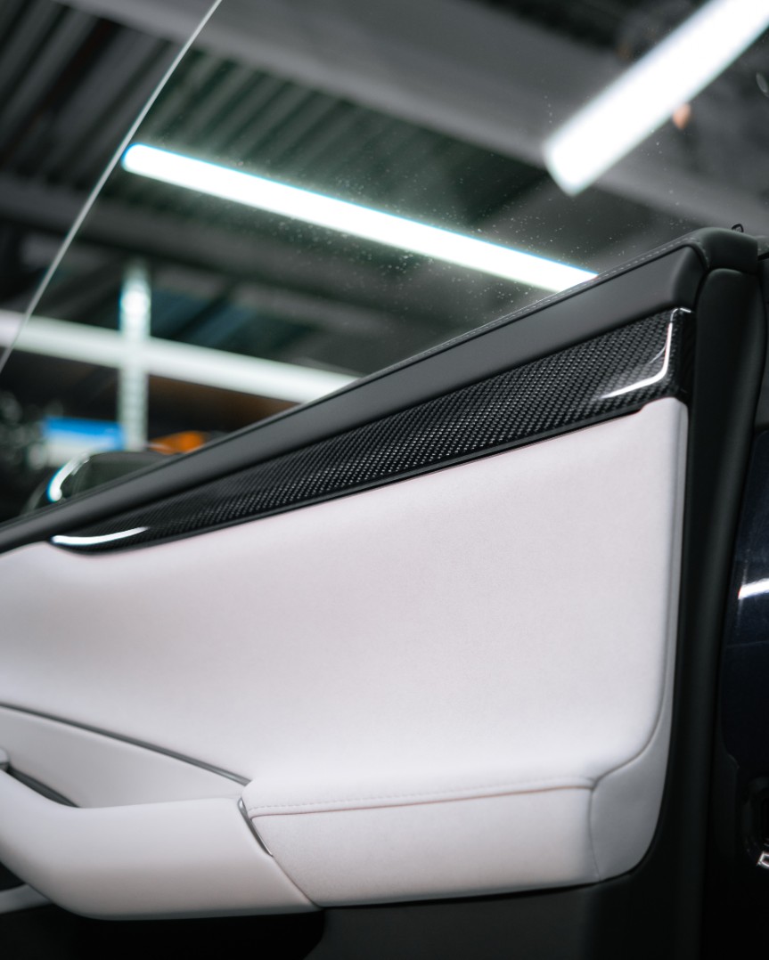 Помимо этого, нашими мастерами были изготовлены карбоновые элементы - вставка в центральную консоль и вставки в дверные карты.